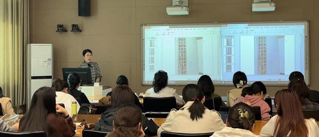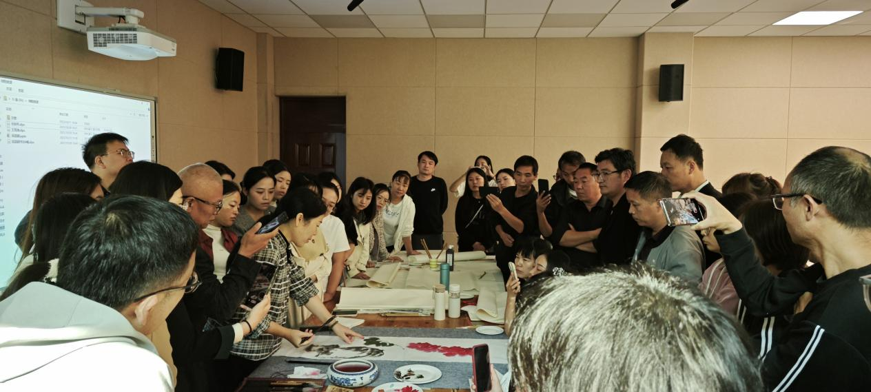 2023年10月13日上午,应我院邀请,信阳市文联主席殷丽在艺术楼217教室为英国365上市公司“国培计划”骨省级初中美术骨干教师研修班的学员们进行现场教学。