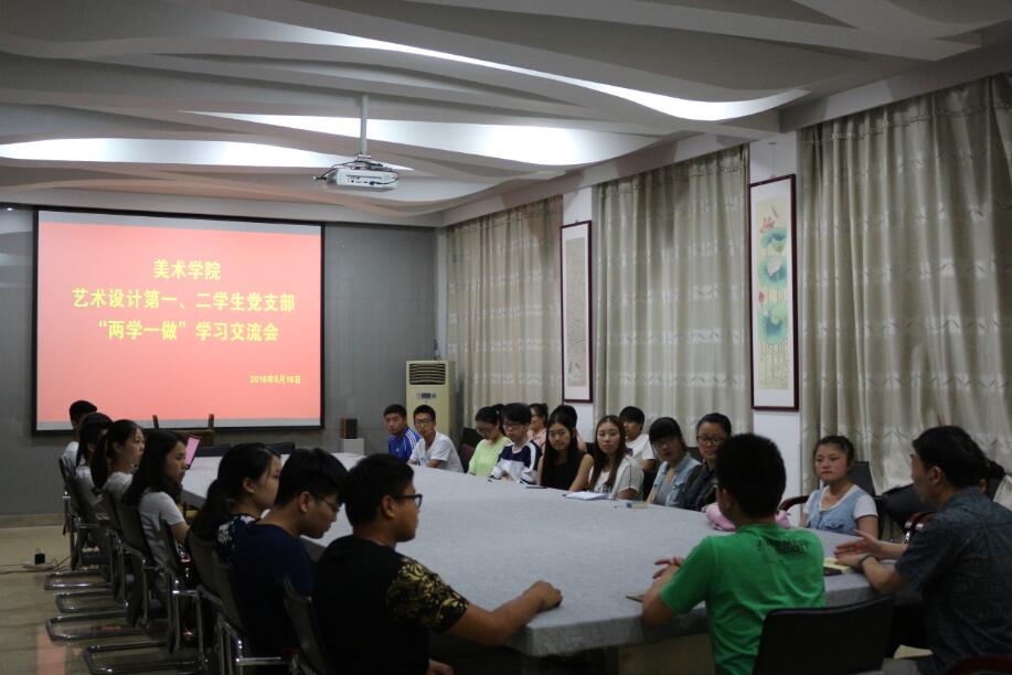 为认真贯彻党的十八大和十八届三中、四中、五中全会精神,6月16日晚,美术学院艺术设计第一、第二学生党支部“两学一做”学习交流会在艺术楼二楼会议室举行。我院党委书记周子良、党支部书记张锐及艺术设计第一、第二学生党支部的学生党员参加。会议由张锐主持。 会议开始,大家共同观看了《十八大以来反腐败战略的调整》的视频,随后,周子良就视频内容发表讲话,他强调大家都要做到时刻警钟长鸣,从思想上、作风上、行为上严起来,营造令行禁止、风清气正的好环境,并由大及小,由远及近,要求同学们在日常生活中,遵纪守法、自重、自省、自警、自励,充分发挥学生党员先锋模范带头作用,引领大学生群体筑牢理想信念、自觉优化学风、参与科技创新、投身创业实践、励志成长成才,做模范的共产党员。最后张锐做会议总结,希望同学们时时学习,不断自我完善,自我提升。