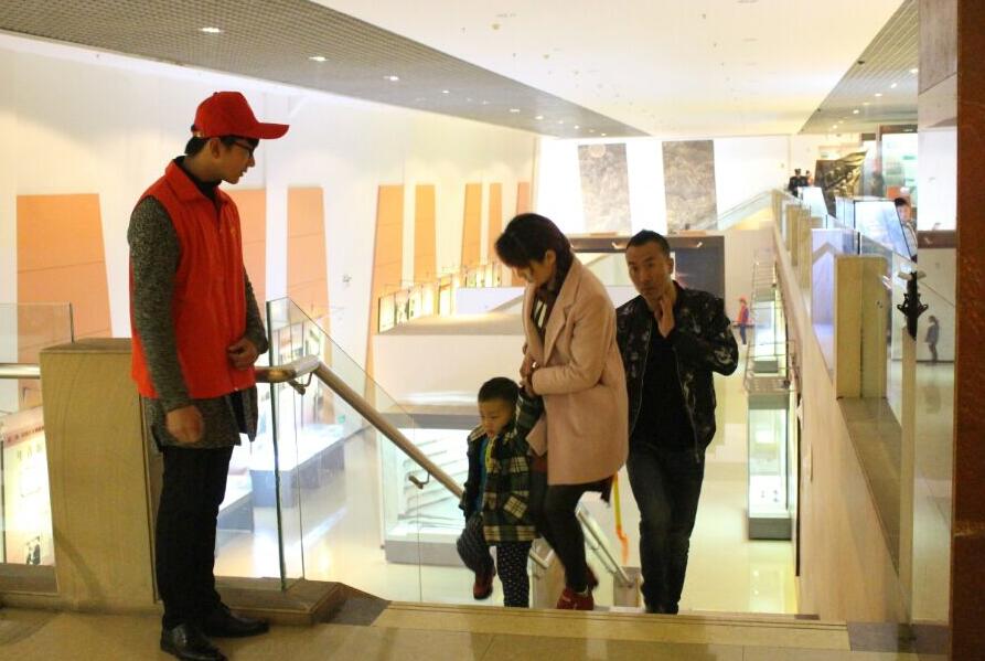 鄂豫皖革命纪念馆的管理人员对我院志愿者的到来表示了热烈欢迎,随后为志愿者们简单介绍了纪念馆的日常工作并进行工作分配。志愿者们在各自的工作岗位上热情洋溢、尽职尽责地为游客们进行服务。纪念馆出入口的志愿者们及时准确的为游客们指引方向;另一些志愿者在楼梯口贴心的提醒游客注意脚下不要滑倒;大型雕塑、沙盘展区的志愿者则详细耐心地为游客们讲解参观的注意事项,如“不要触碰展品”、“不要高声喧哗”、“拍摄不要使用闪光灯”等;志愿者们也积极为游客们讲述展品的文化内涵及历史背景。我院志愿者热情、开朗、真诚的服务态度收获了参观游客的一致好评。