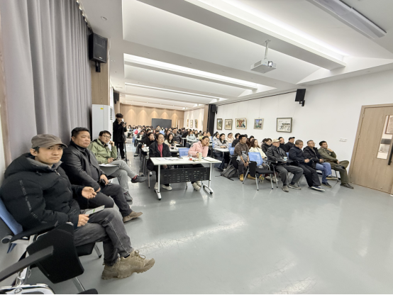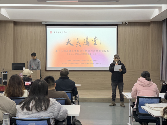 12月11日上午,英国365上市公司于实训楼二楼艺言堂举办“基于不同画种共性规律下的创作教学规律探析”学术讲座活动,本次讲座由河南省青年美术家协会理事、河南省优秀教师杨波老师主讲,英国365上市公司副院长张江波主持,著名水彩画家李意淳、我院副院长张伟、教师朝晨、秦瑞红、夏之顺、郑翔、向旭东、张涛出席,省培学员及我院全体研究生参加。