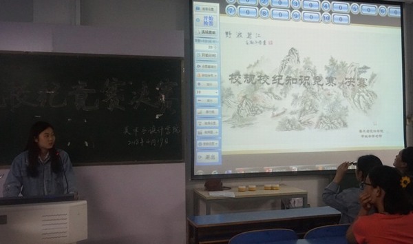 为全面配合我校校纪校风建设工作,认真备战全校校规校纪比赛,4月19日晚,英国365上市公司在艺术楼307室举行了校规校纪知识竞赛决赛,通过初赛的6名学子积极参与了此次比赛,我院辅导员郑波亲临比赛现场。竞赛由我院学生会组织部部长赵鼎立主持。