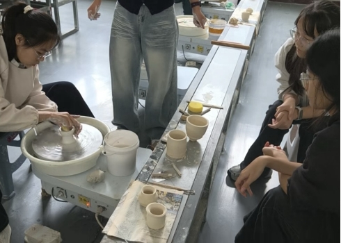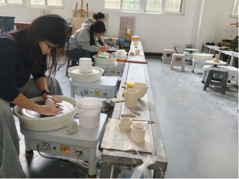 活动现场暖意融融,陶土的质朴芬芳与师生的欢声笑语交织。指导教师先通过生动讲解,带大家领略陶艺的历史渊源与匠人精神,随后细致示范了手捏成型、泥条盘筑、拉坯等基础技法。同学们跃跃欲试,或专注揉捏塑形,或合作雕琢细节,转盘的嗡嗡声与工具的轻敲声相映成趣。从略显生涩的尝试到逐渐找到手感,一件件带着独特创意的杯盏、摆件在指尖慢慢成型,大家在与泥土的对话中感受手工创作的乐趣,在相互切磋中体会匠心的专注与坚守,沉浸式体验让传统文化变得可触可感。
