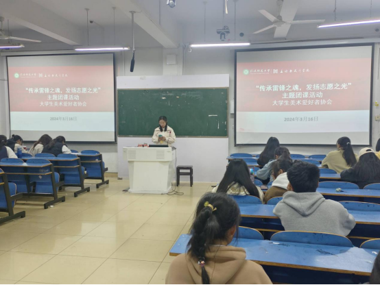 3月16日,美院大学生美术爱好者协会于艺术楼307教室召开“传承雷锋之魂,发扬志愿之光”主题团课活动。
