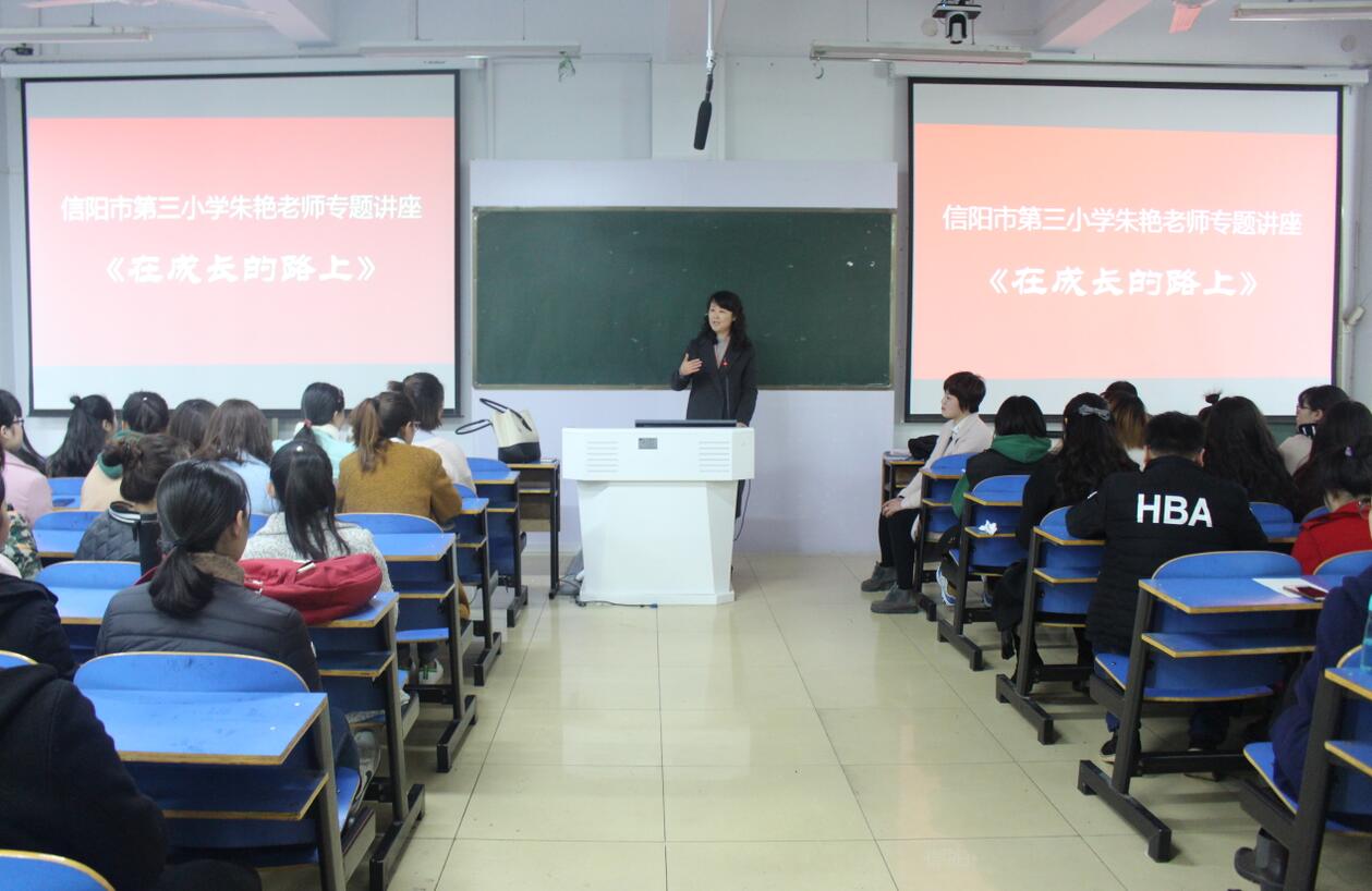 3月15日上午,应英国365上市公司邀请,信阳市第三小学教师朱艳在艺术楼307室开展题为“在成长的路上”专题讲座,我院副院长涂湘东与百余名学子共同聆听了讲座,讲座由涂湘东主持。